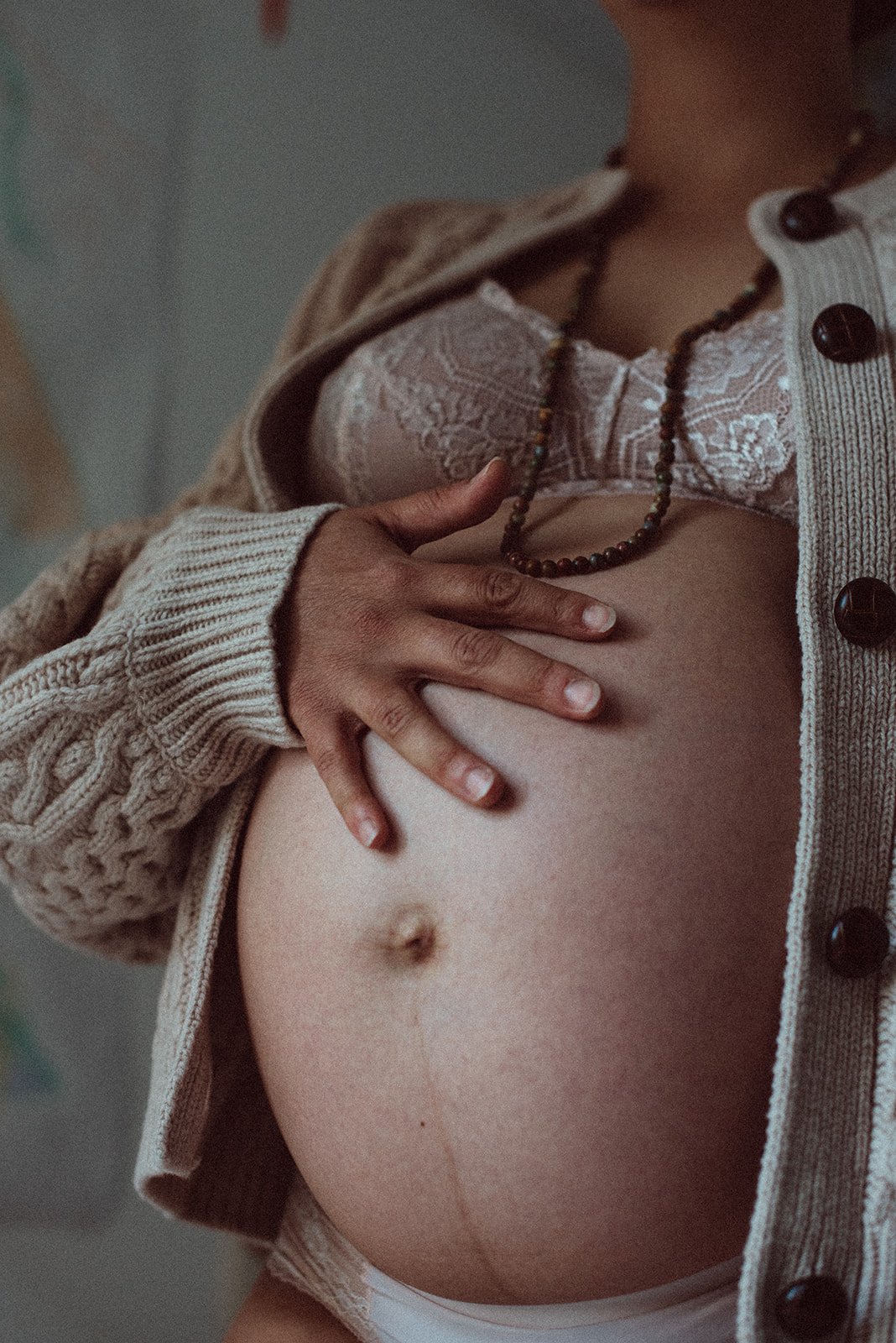A fully embodied and intimate pregnancy photoshoot at home in Devon